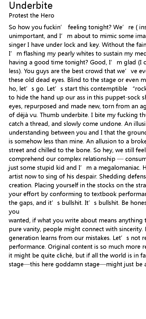 | of déjà vu. Thumb underbite. I bite my fucking thumb, and hope you | |