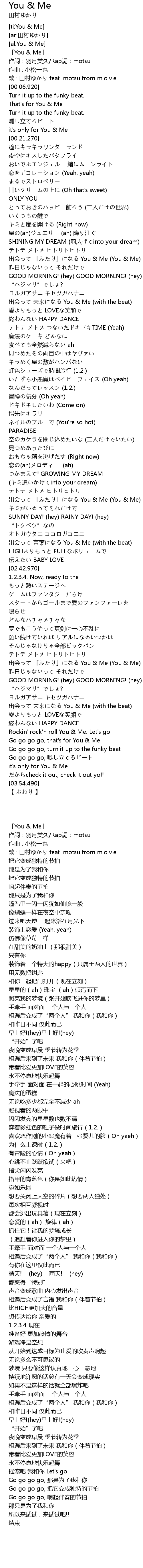 | [03:12.520] | 出会って 「ふたり」になる You & Me (You & Me) |