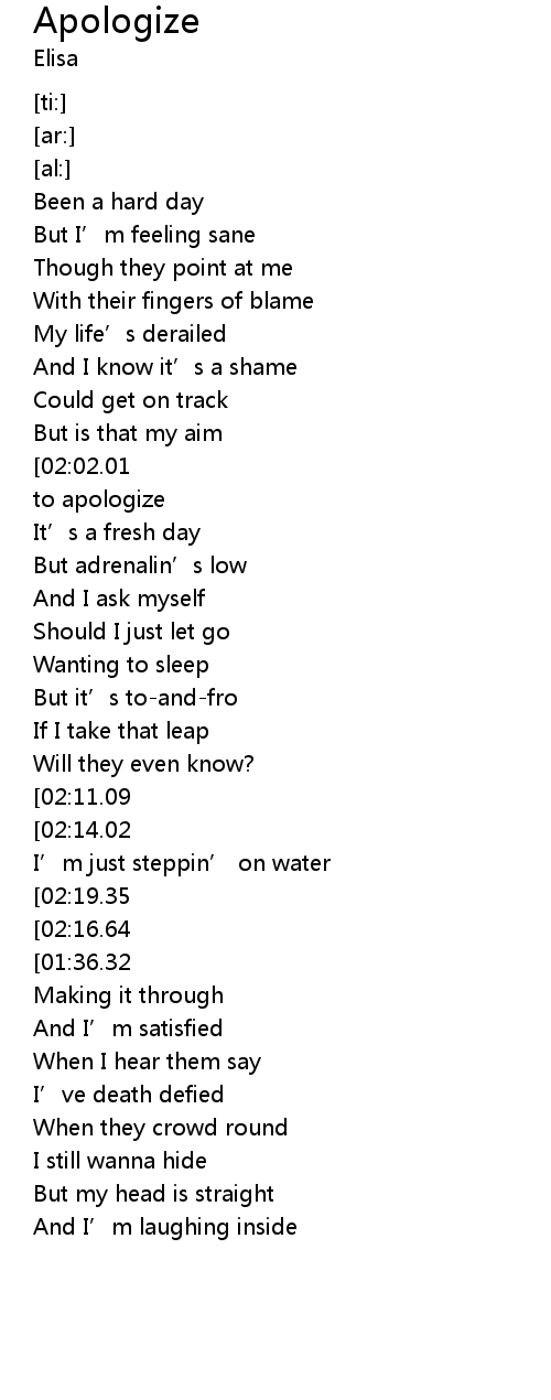 | [02:07.21][02:02.01][00:59.72][00:54.52][00:27.48][00:22.06] | Apologize, destined to apologize |