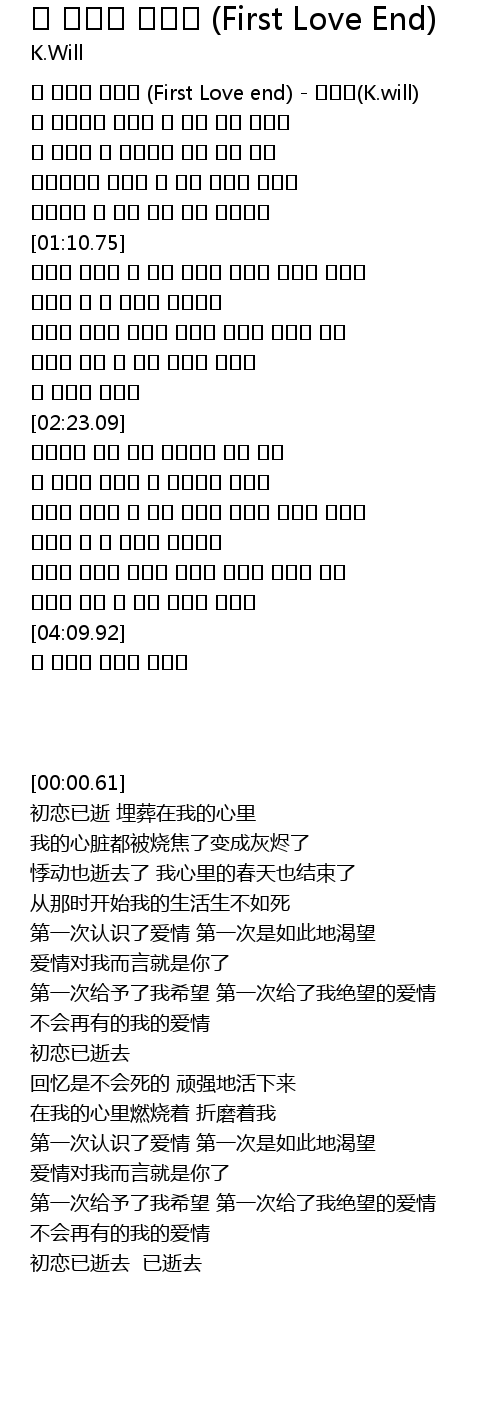 첫 사랑은 죽었다 (First Love end) - 케이윌(K.will) |