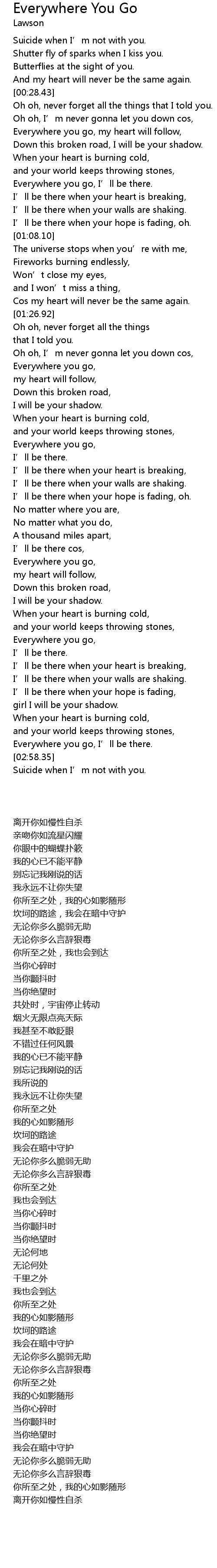 | [03:01.47] | Suicide when I’m not with you. |