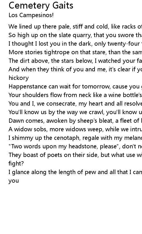You'll know us by the way we crawl, you'll know us by our cemetery gaits |