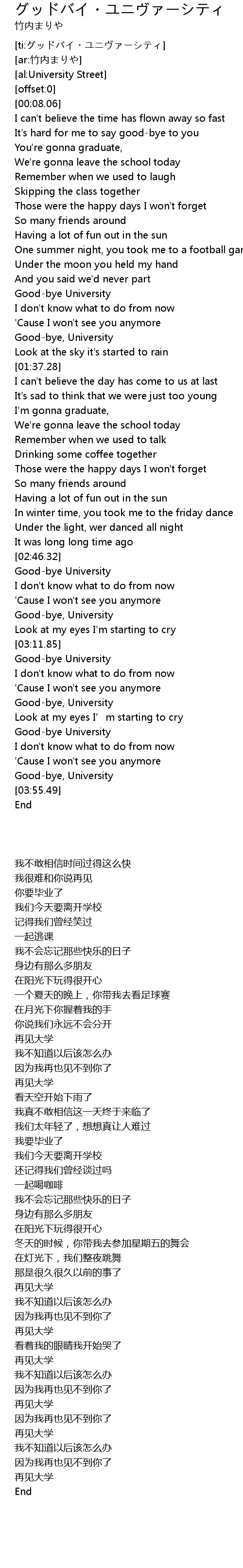 | [ti:グッドバイ・ユニヴァーシティ] | |