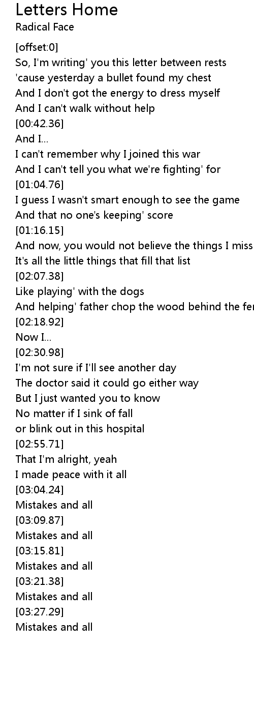 So, I'm writing' you this letter between rests |