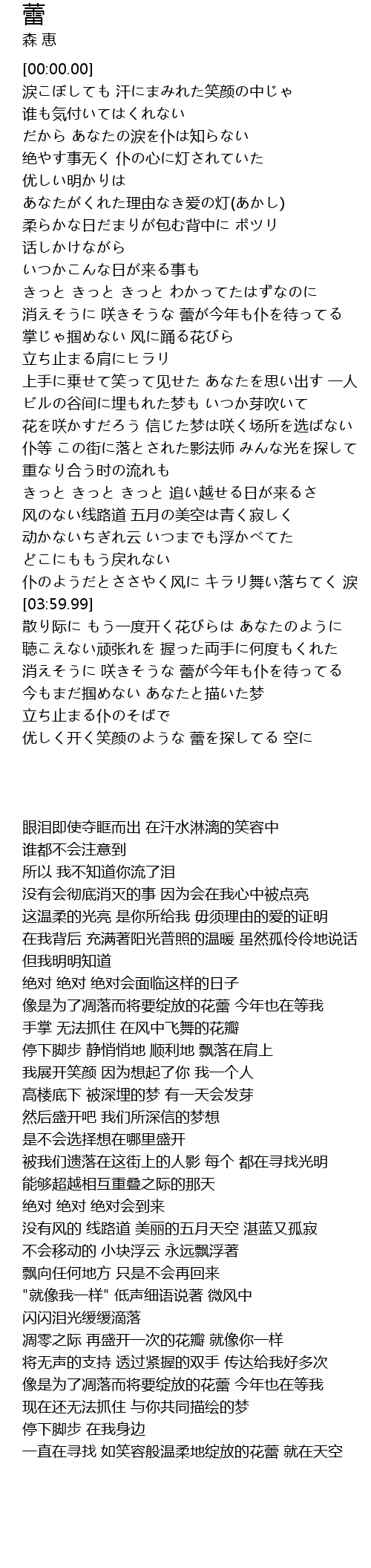 | [04:43.18] | 消えそうに 咲きそうな 蕾が今年も仆を待ってる |