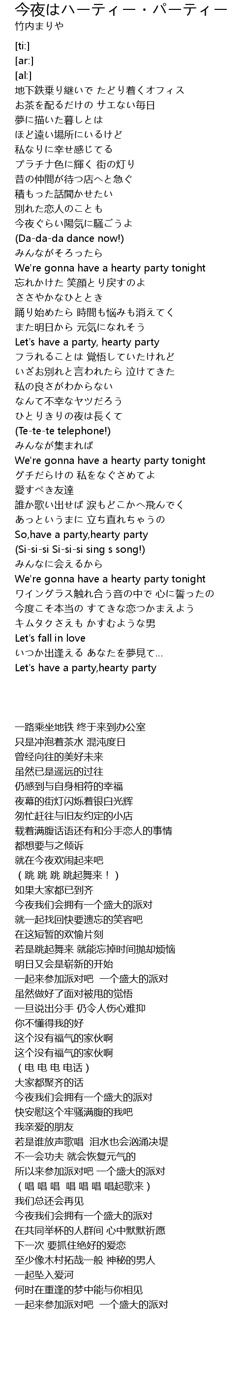 | [01:26.86] | We're gonna have a hearty party tonight |