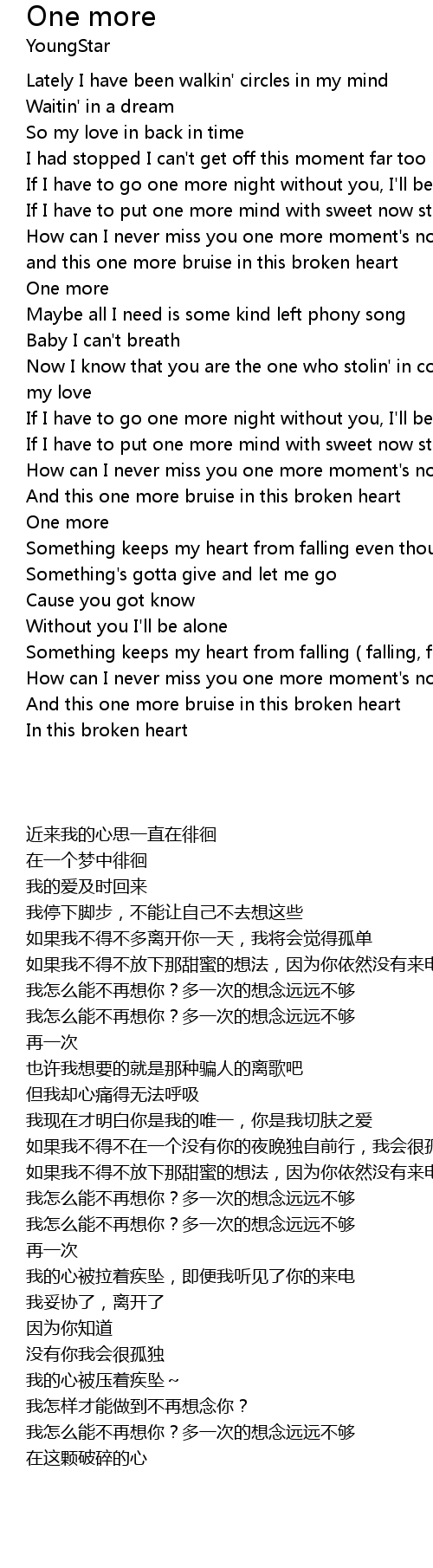 | [01:52.52] | How can I never miss you one more moment's not enough |