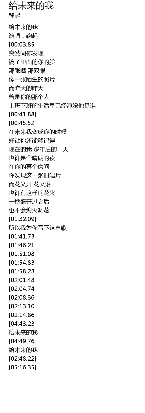 | [04:56.63][04:43.23][04:00.34][03:46.41][02:18.77] | 所以我写这首歌 给未来的我 |