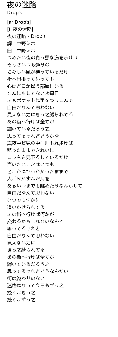 | [00:00.84] | 夜の迷路 - Drop's |