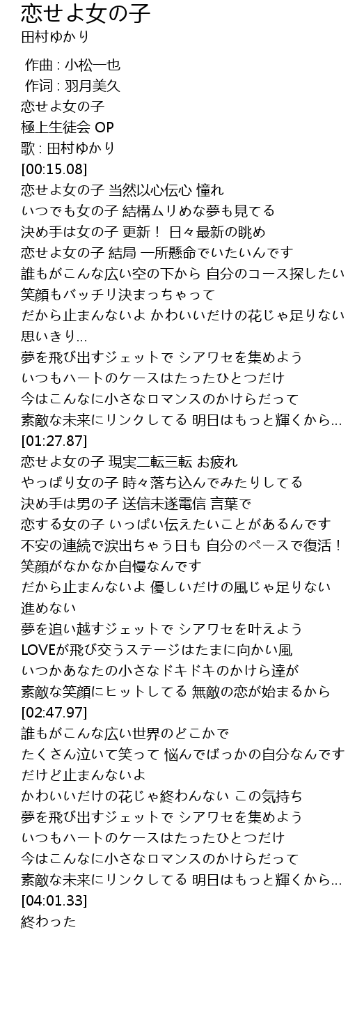 | [01:37.30] | 恋せよ女の子 現実二転三転 お疲れ |