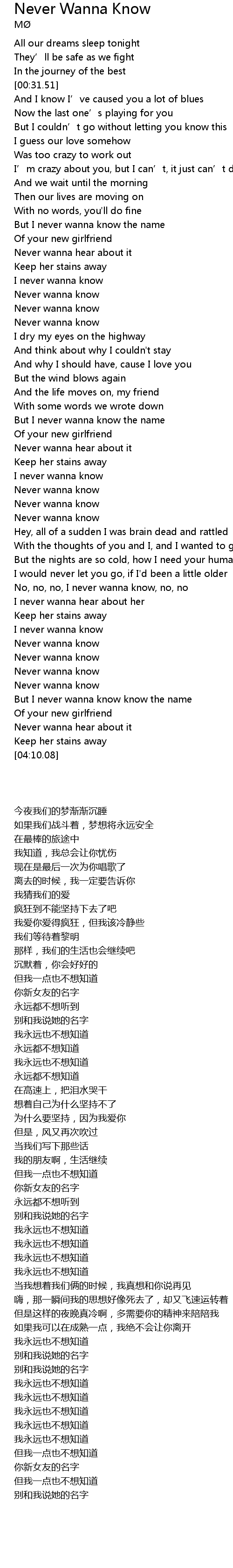 | [03:19.98] | No, no, no, I never wanna know, no, no |