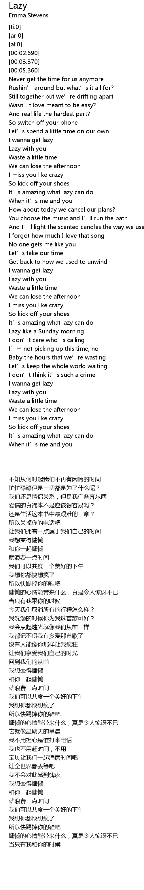 | [02:48.190] | Lazy with you |