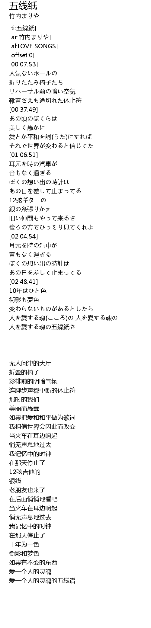| [03:18.00] | 人を愛する魂の五線紙さ |
