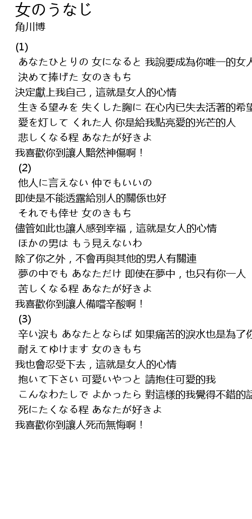 | 死にたくなる程 あなたが好きよ 我喜歡你到讓人死而無悔啊! |