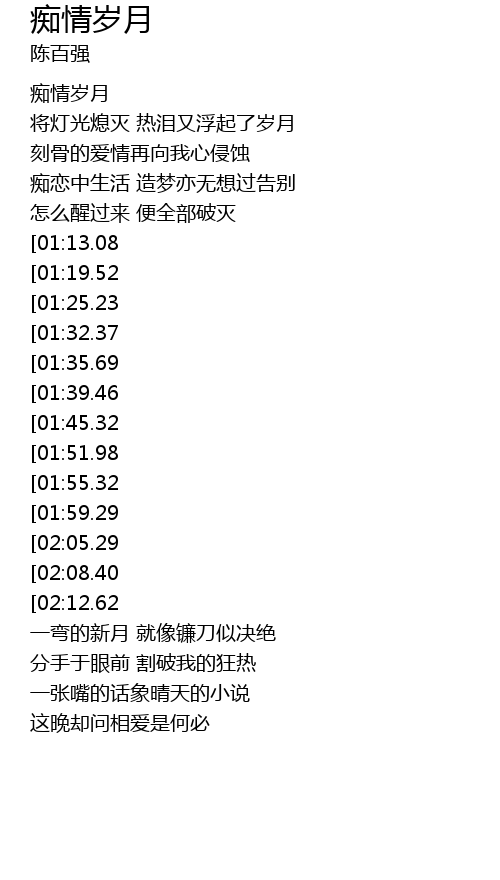 | [00:34.82] | 痴情岁月 |