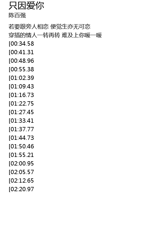 | [00:20.54] | 若要跟旁人相恋 便觉生亦无可恋 |