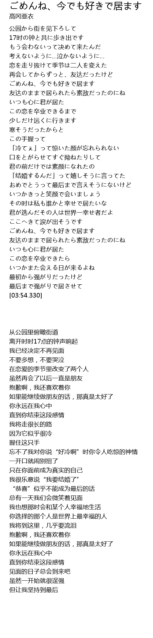 | [00:56.270] | ごめんね、今でも好きで居ます |