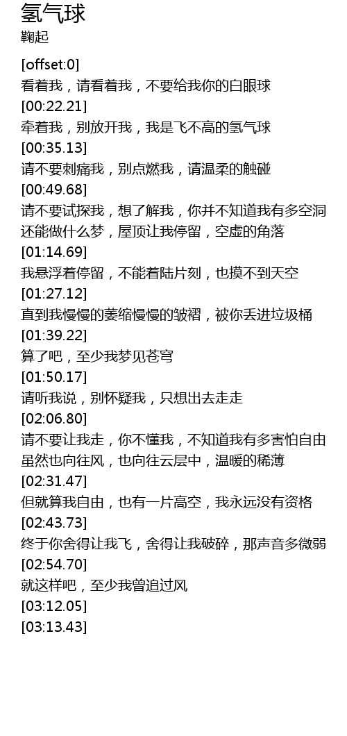 | [00:25.95] | 牵着我,别放开我,我是飞不高的氢气球 |
