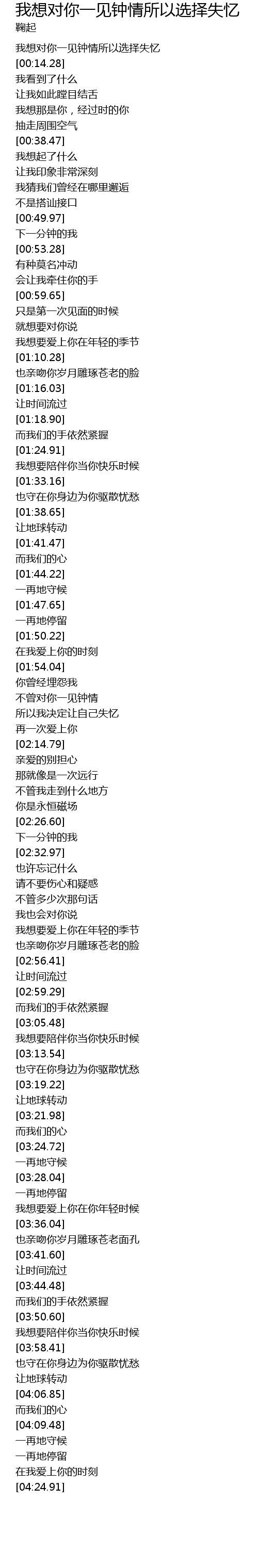 | [00:01.10] | 我想对你一见钟情所以选择失忆 |