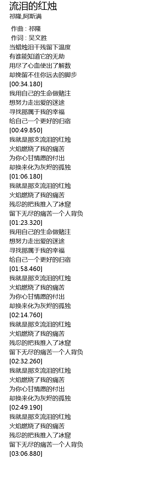 | [02:34.390] | 我就是那支流泪的红烛 |