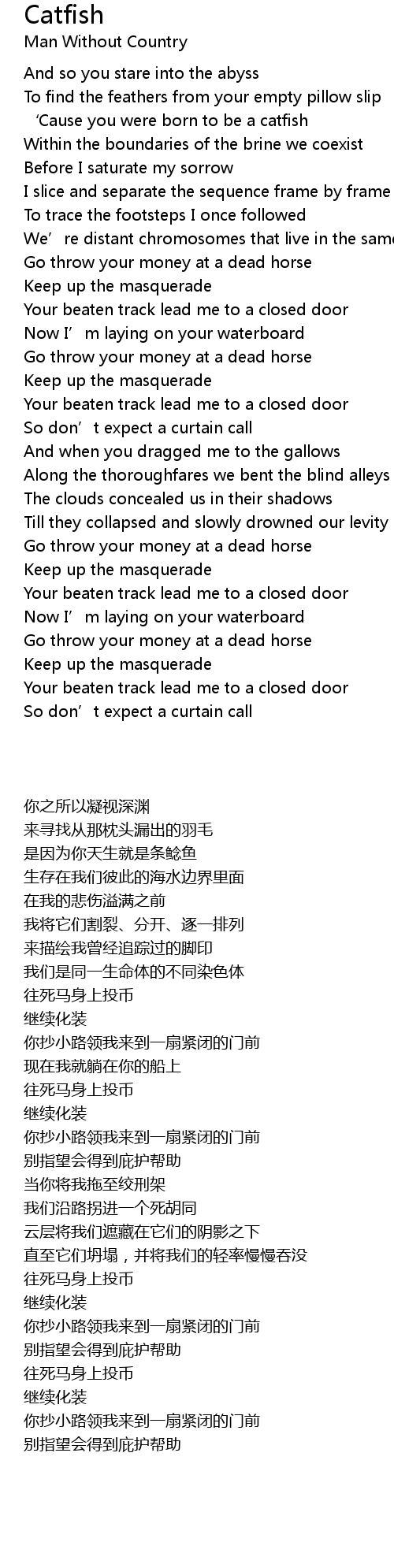 | [00:16.870] | ‘Cause you were born to be a catfish |