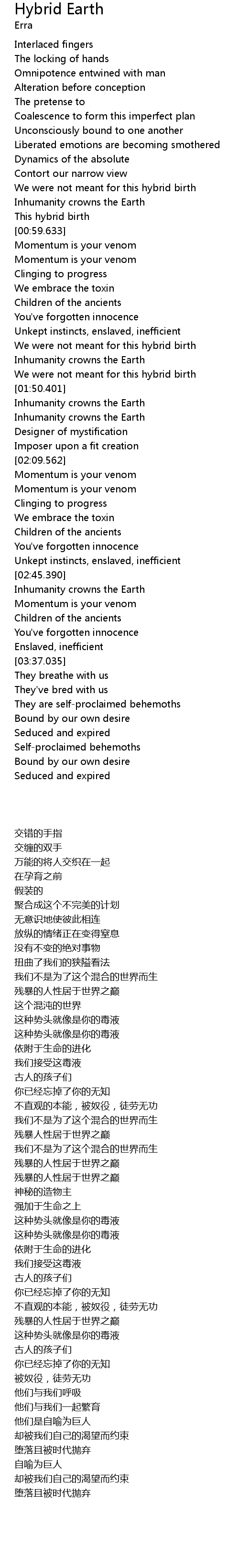 | [01:51.276] | Inhumanity crowns the Earth |
