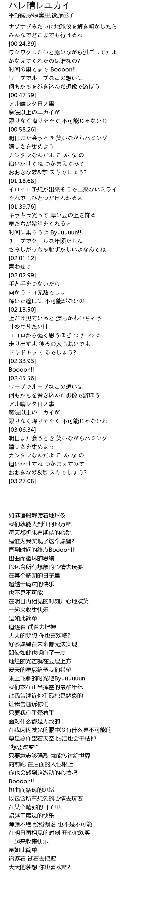 | [00:20.40] | みんなでどこまでも行けるね |