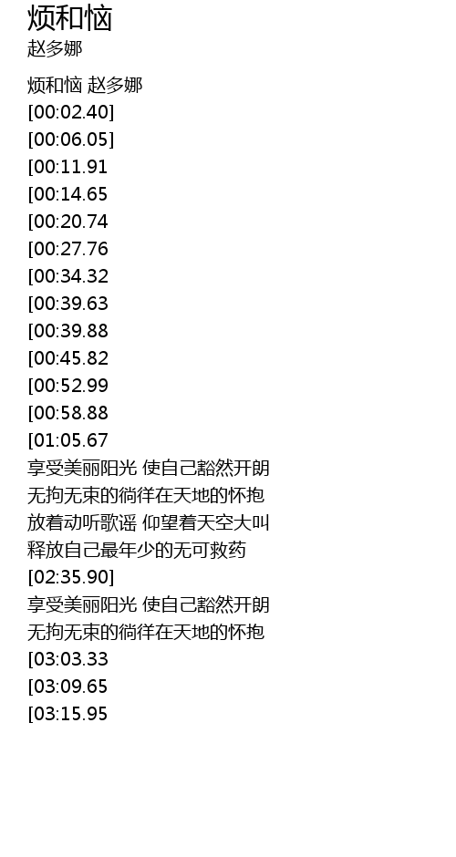 | [01:31.93][00:39.88] | 享受美丽阳光 使自己豁然开朗 |
