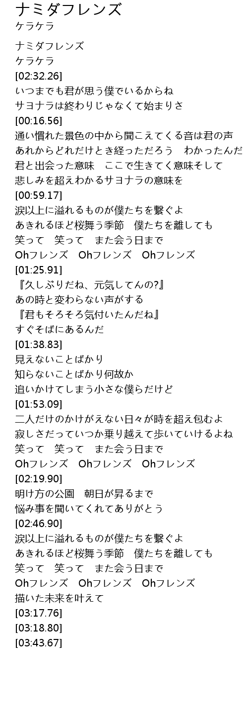 | [02:20.73] | ナミダフレンズ |