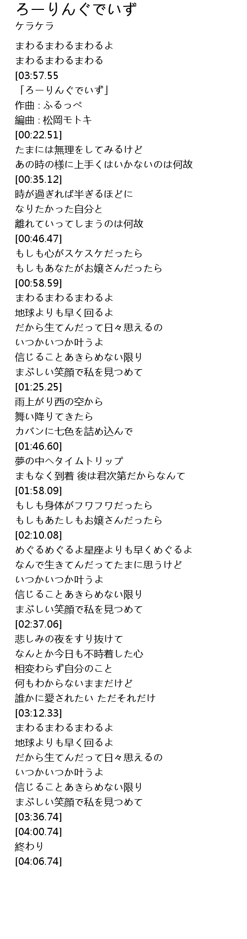 [02:12.95] めぐるめぐるよ星座よりも早くめぐるよ