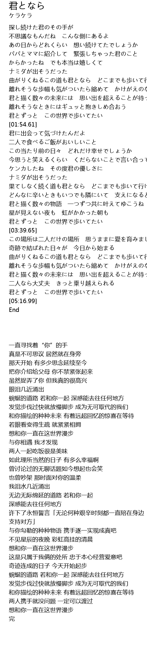 | [05:04.83] | 君とずっと この世界で歩いてたい |