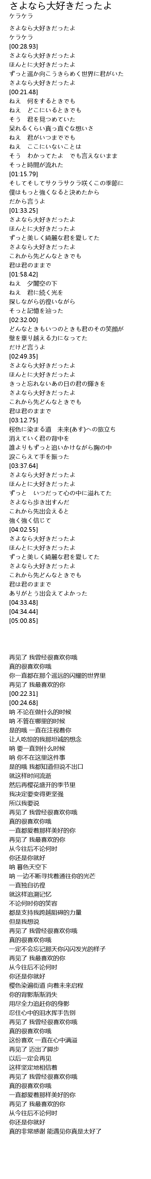 | [01:33.61] | さよなら大好きだったよ |