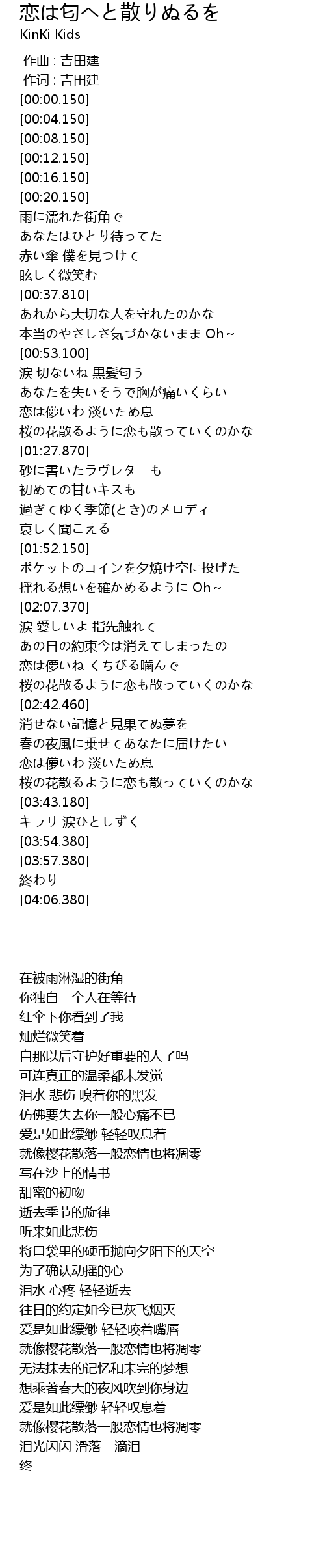 | [02:30.810] | 桜の花散るように恋も散っていくのかな |