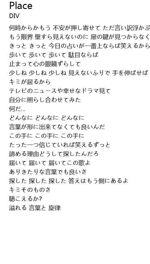| 届いて 届いて 届いてこの歌よ ありきたりな言葉でも良いさ | |