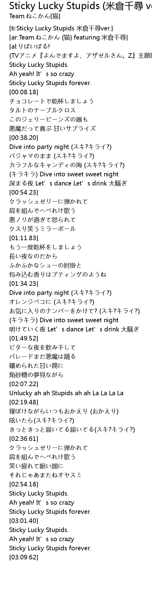 | [ti:Sticky Lucky Stupids 米倉千尋ver.] | |