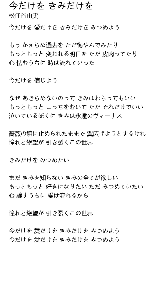 | 今だけを 愛だけを きみだけを みつめよう | |