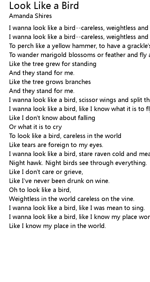 I wanna look like a bird, like I was mean to sing. |