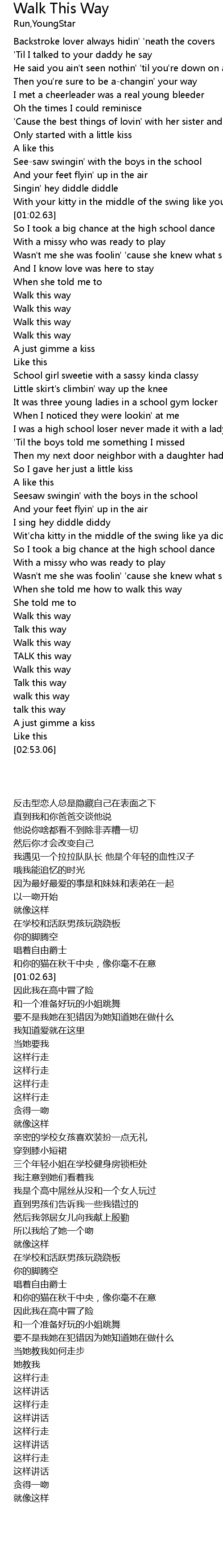 | [02:43.50] | Walk this way |