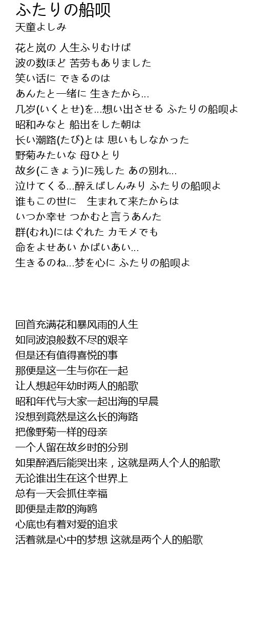 | [02:45.01] | 泣けてくる…醉えばしんみり ふたりの船呗よ |