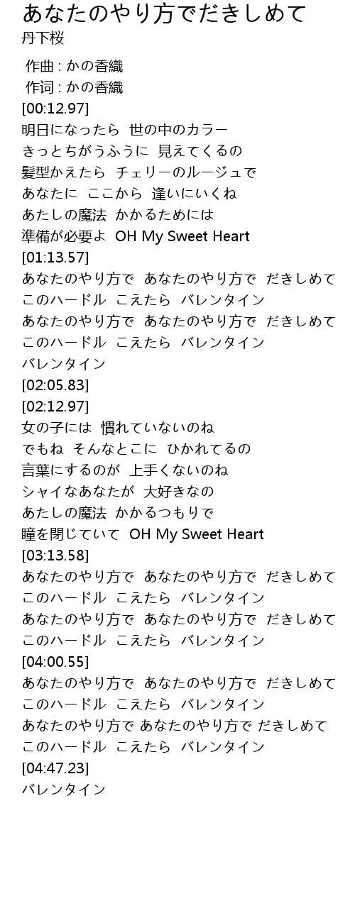 | [04:21.43] | あなたのやり方で あなたのやり方で だきしめて |