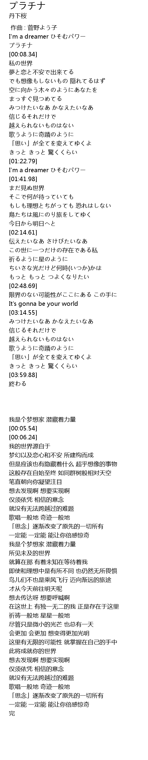 | [01:30.63] | I'm a dreamer ひそむパワー |
