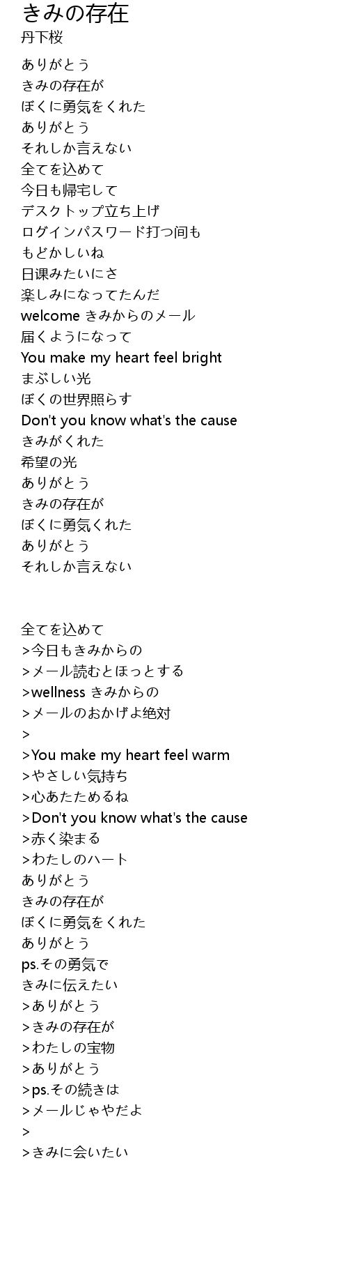 | Song | きみの存在 |