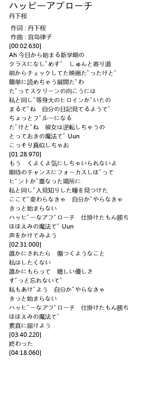| [02:14.580] | ハッピーなアプローチ 仕掛けたもん勝ち |