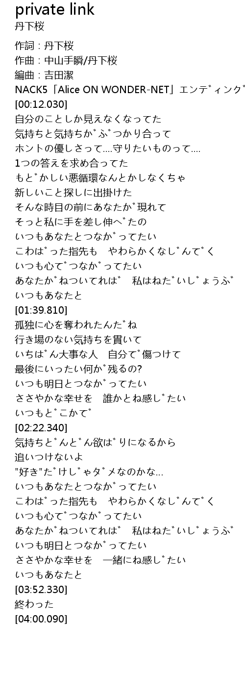| [00:00.000] | 作詞:丹下桜 |