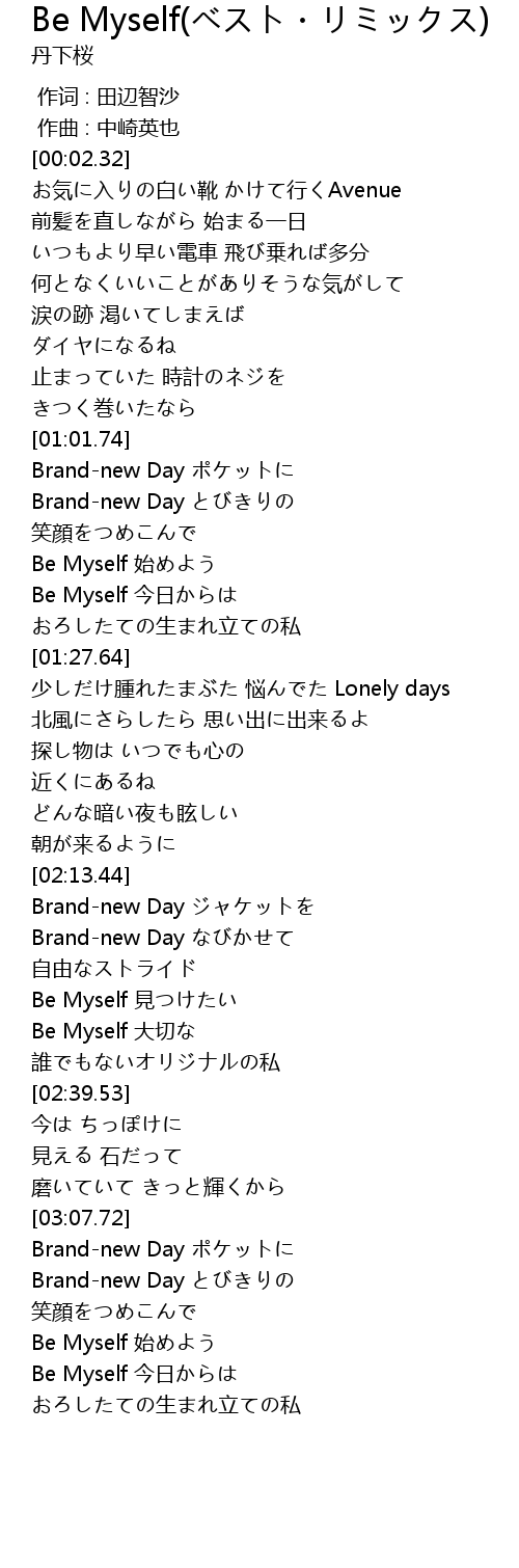 | [02:28.55] | Be Myself 大切な |