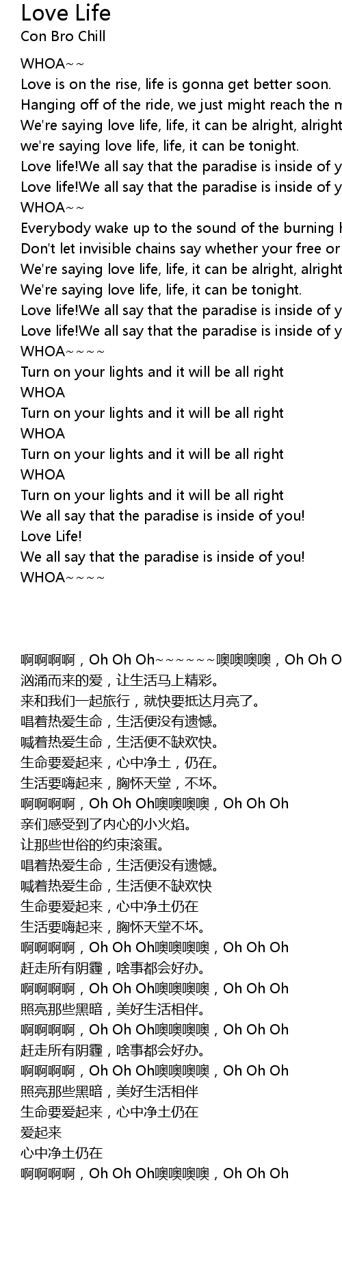 We're saying love life, life, it can be alright, alright. |