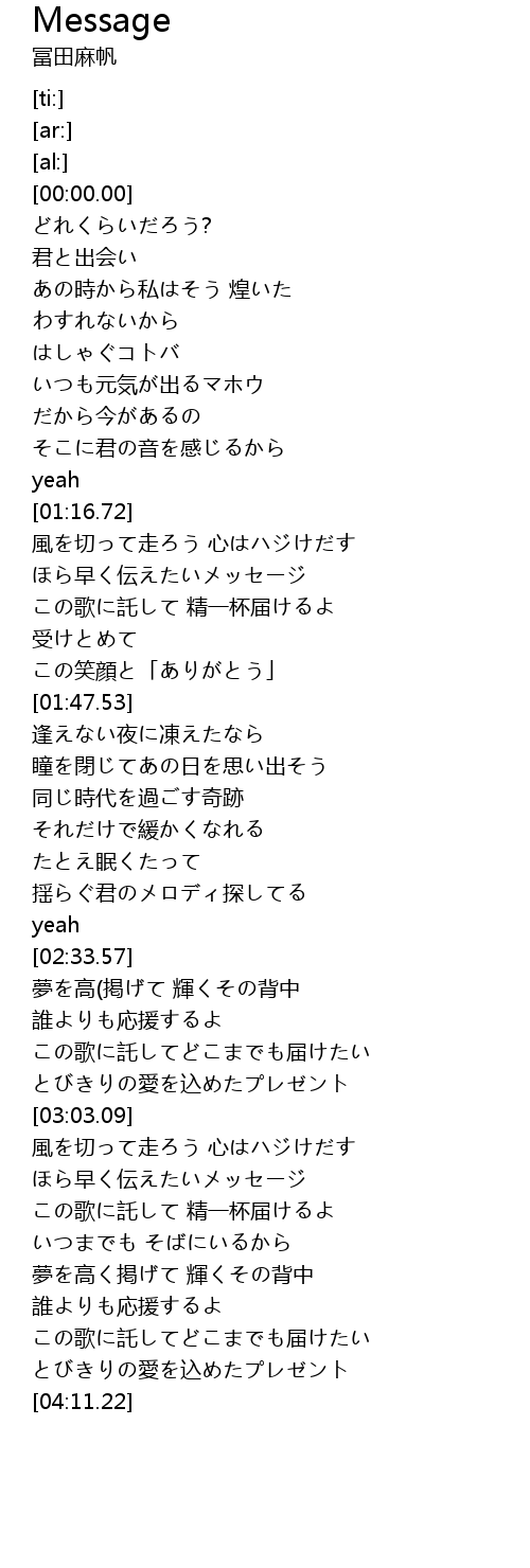 | [03:24.75] | ほら早く伝えたいメッセージ |