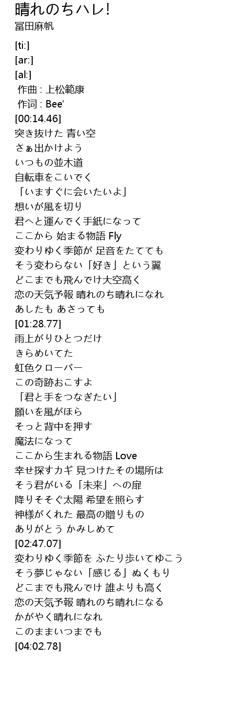 [01:14.39] 恋の天気予報 晴れのち晴れになれ
