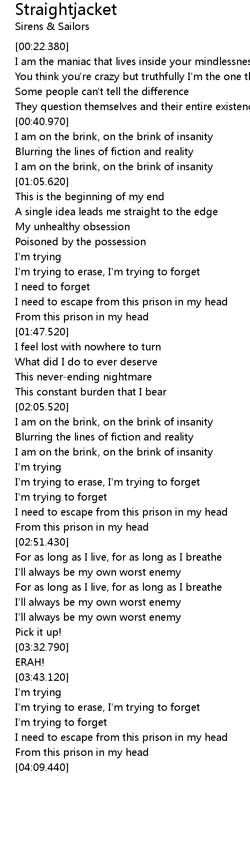 I need to escape from this prison in my head |