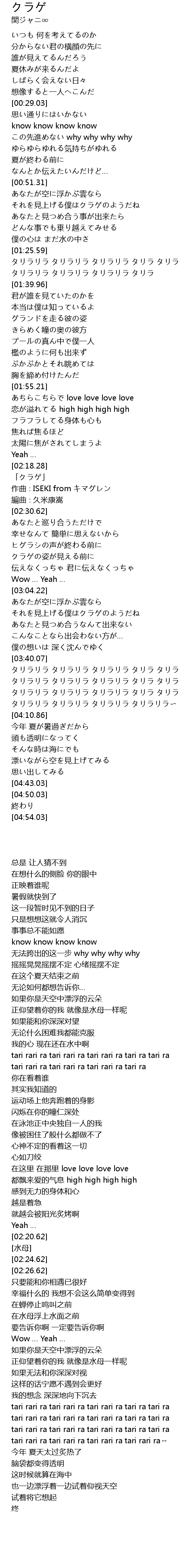 | [02:24.62] | 作曲∶ISEKI from キマグレン |